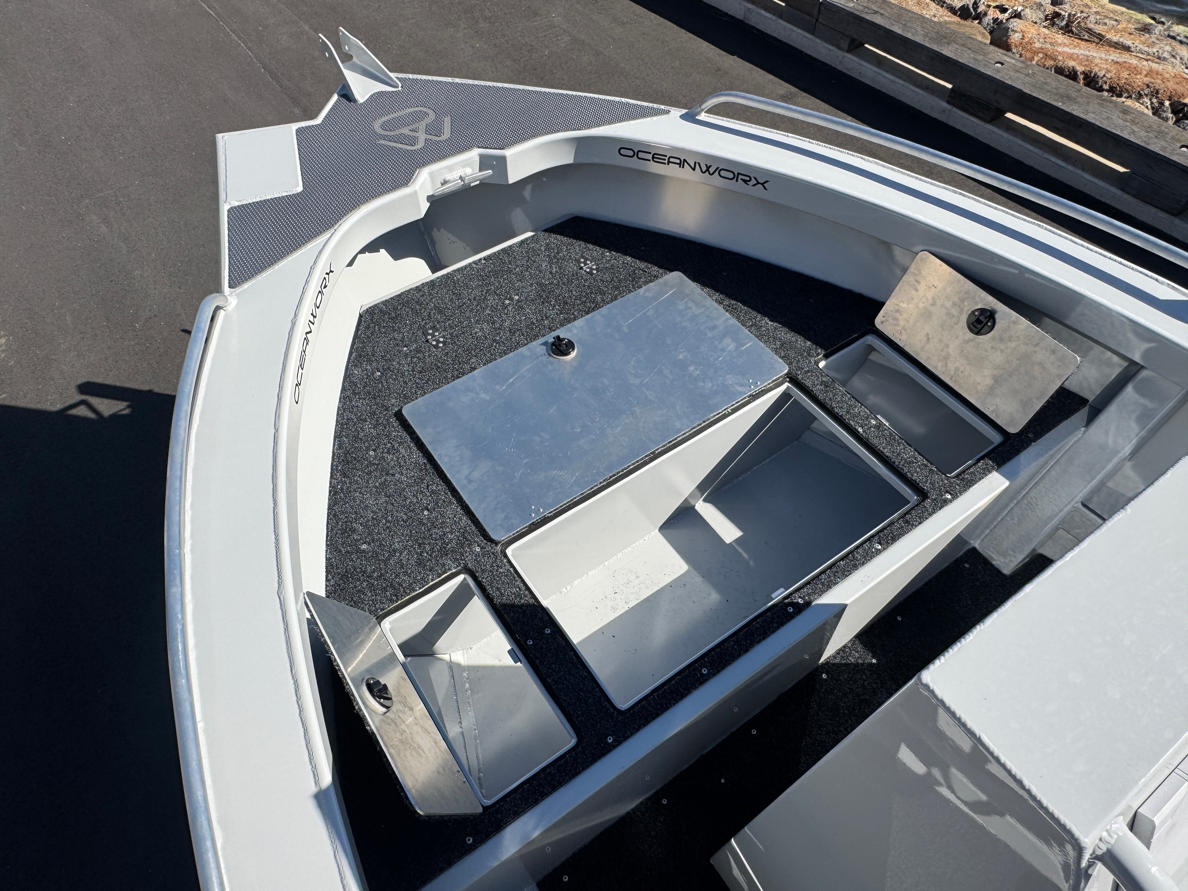 The Squadron 4.8 CC is a dynamic 5083 grade plate alloy fishing boat with on-water performance and value as it’s focus. With a sit down drive position its low profile will make storage in a garage easier and make the drive experience that bit more sporty. Its full of features but most of all it has the on-water performance that sets the Oceanworx model lineup apart from the rest. With design cues from High Tensile hull shape, the Squadron 4.8 provides an exceptionally soft ride, incredible stability at rest and cornering like a sports car. When you step aboard you will find it standard with aluminium flooring, a 9” Lowrance sounder GPS, helm seat with space saver frame and plenty of storage. The Squadron range uses Cold Formed technology to form the reverse chine of the hull and utilises a chine extrusion to enhance cornering and maintain the dry ride reputation of the Oceanworx hull shape.